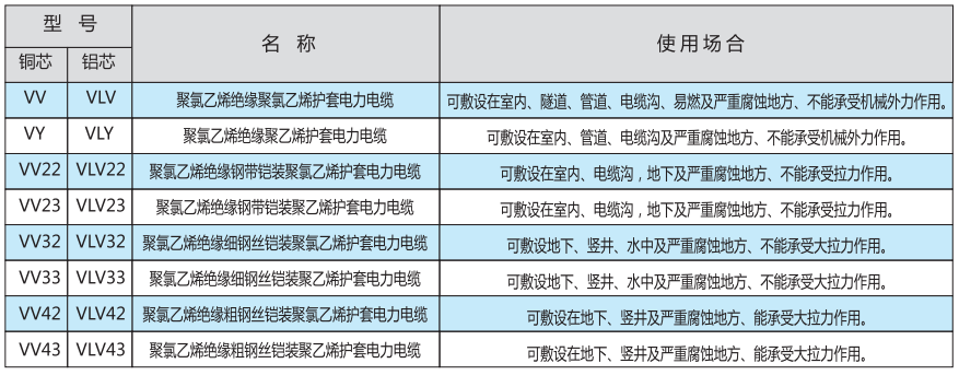 3、短路(lu)時(最(zui)長持續時間不超過5S)電纜的最(zui)高(gao)工作溫度160°C;
