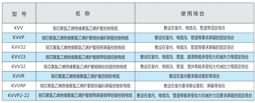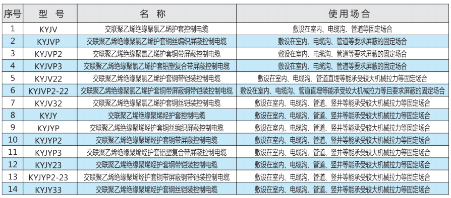 交聯聚乙烯絕緣控制電纜的型號、名稱、使用范圍