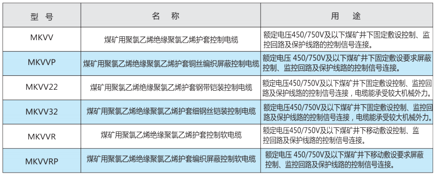 本產(chan)品適(shi)用于(yu)交流額定電壓(ya)450/750V及以下(xia)(xia)煤礦井下(xia)(xia)控制、監控回路及保護線路的接線。其機械(xie)物理性能,電纜(lan)性能符合Q/QL005、NB/T11129-2023《煤礦用控制電纜(lan)》的規(gui)定。