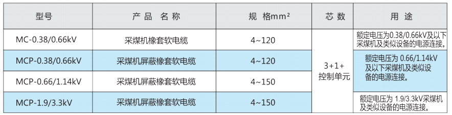 該電(dian)纜(lan)適(shi)用于額定電(dian)壓1.9/3.3kV及(ji)以下采(cai)(cai)煤機及(ji)類似設(she)備(bei)的電(dian)源連接,其產(chan)品機械性(xing)能及(ji)電(dian)性(xing)能均符合(he)煤炭行業標準MT818.2-2009《額定電(dian)壓1.9/3.3kV及(ji)以下采(cai)(cai)煤機軟(ruan)電(dian)纜(lan)》、MT/T818.1-2009O/OL034-2022《煤礦用電(dian)纜(lan)額定電(dian)壓1.9/3.3KV及(ji)以下采(cai)(cai)煤機橡套軟(ruan)電(dian)纜(lan)》