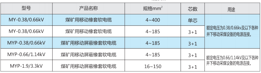 該電(dian)(dian)(dian)(dian)纜適用于額(e)定(ding)(ding)電(dian)(dian)(dian)(dian)壓(ya)0.66/1.14kV及(ji)以下(xia)煤礦(kuang)移(yi)動設備的電(dian)(dian)(dian)(dian)源連接,其機(ji)械性能(neng)及(ji)電(dian)(dian)(dian)(dian)性能(neng)均符合煤炭行業標準MT818.5-2009《煤礦(kuang)用電(dian)(dian)(dian)(dian)纜第5部分:額(e)定(ding)(ding)電(dian)(dian)(dian)(dian)壓(ya)0.66/1.14kV及(ji)以下(xia)移(yi)動軟電(dian)(dian)(dian)(dian)纜》MT818.1-2009、Q/QL009-2021、MT818.1-2009、Q/QL007-2021《煤礦(kuang)用電(dian)(dian)(dian)(dian)纜額(e)定(ding)(ding)電(dian)(dian)(dian)(dian)壓(ya)0.66/1.14KV及(ji)以下(xia)移(yi)動軟電(dian)(dian)(dian)(dian)纜》MT818.1-2009、Q/QL004-2021的規定(ding)(ding)