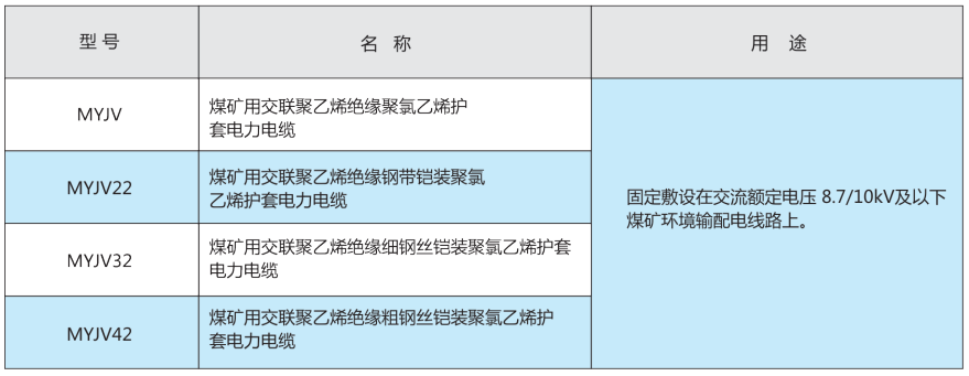 本產品系煤(mei)(mei)礦用(yong)額定(ding)電(dian)壓(ya) 10KV 及以下銅(tong)芯固定(ding)敷(fu)設阻燃(ran)電(dian)力(li)電(dian)纜(lan),適用(yong)于(yu)低、中壓(ya)輸配電(dian)系統其性能符合(he)煤(mei)(mei)炭行業相關標準 MT818.11~MT818.13-2009《煤(mei)(mei)礦用(yong)電(dian)纜(lan) 額定(ding)電(dian)壓(ya)10KV及以下固定(ding)敷(fu)設電(dian)力(li)電(dian)纜(lan)》的規定(ding)。