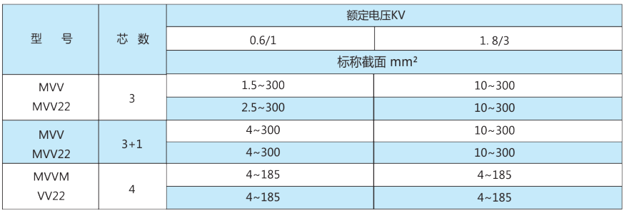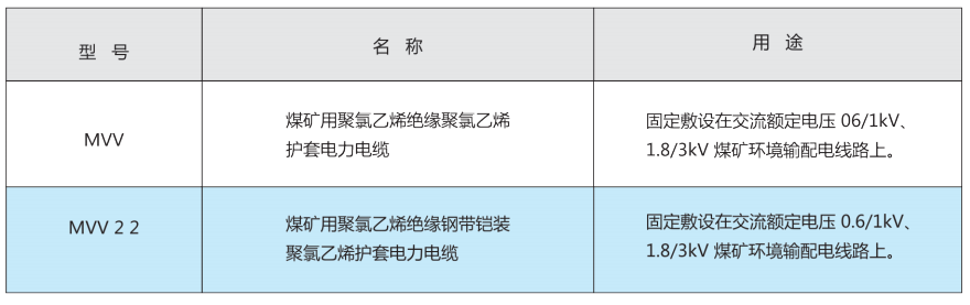(1)額定(ding)電(dian)壓 1.8/3ky 及以下(xia)煤礦(kuang)用聚氯乙烯(xi)絕緣(yuan)電(dian)力電(dian)纜(lan)