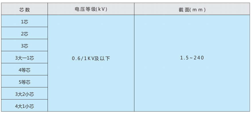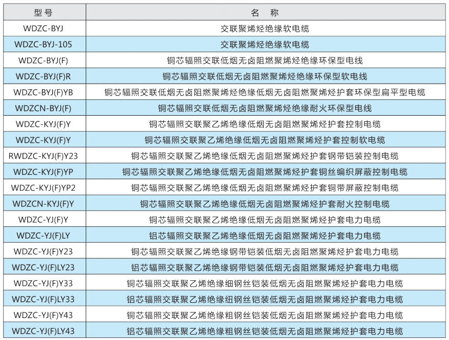 注(zhu):可根據用戶需(xu)求提供WDZB、WDZA型(xing)阻燃(ran)電纜;WDZCN、WDZBN、WDZAN型(xing)耐火(huo)電纜。